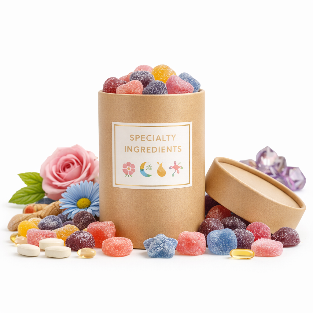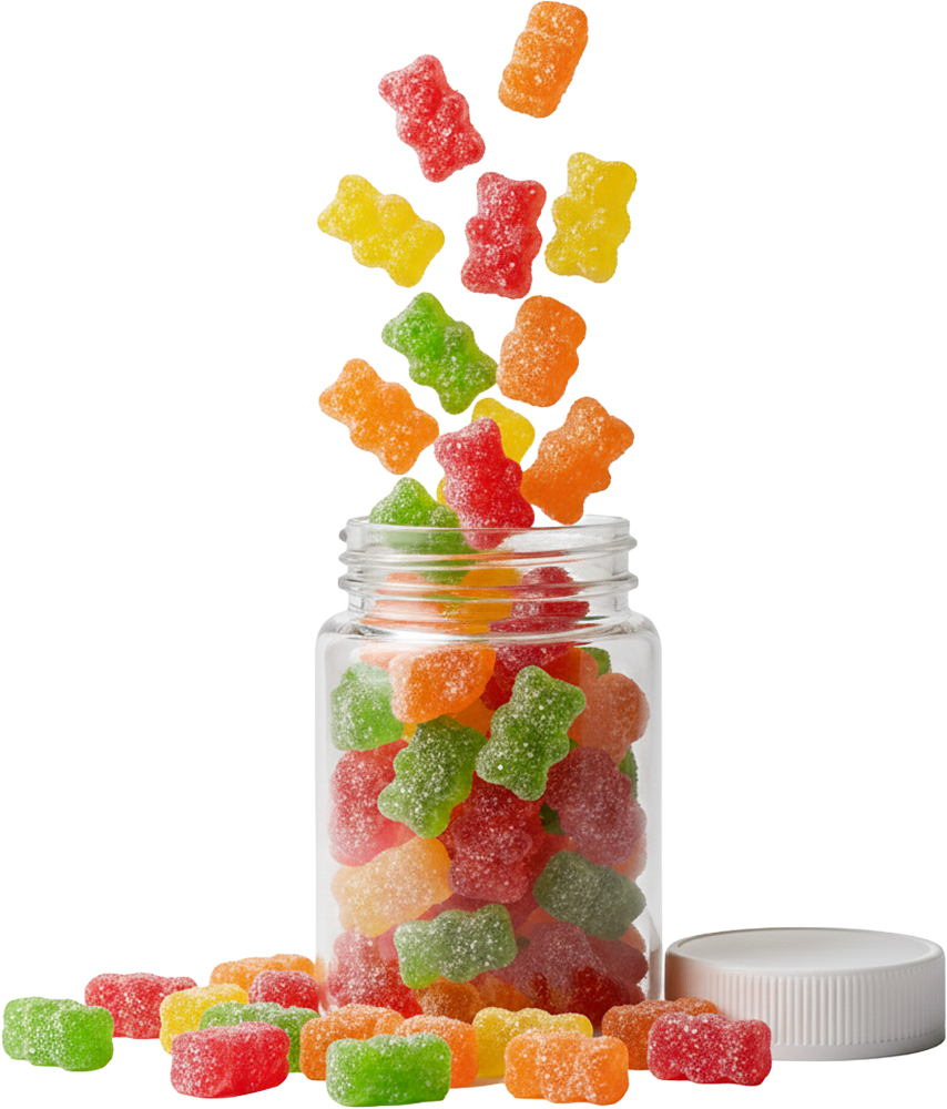 Our gummies blend science with sensory appeal: offering custom formulations, clean-label options, vegan bases, and a wide spectrum of active ingredients, from vitamins and botanicals to adaptogens and specialty nutraceuticals.